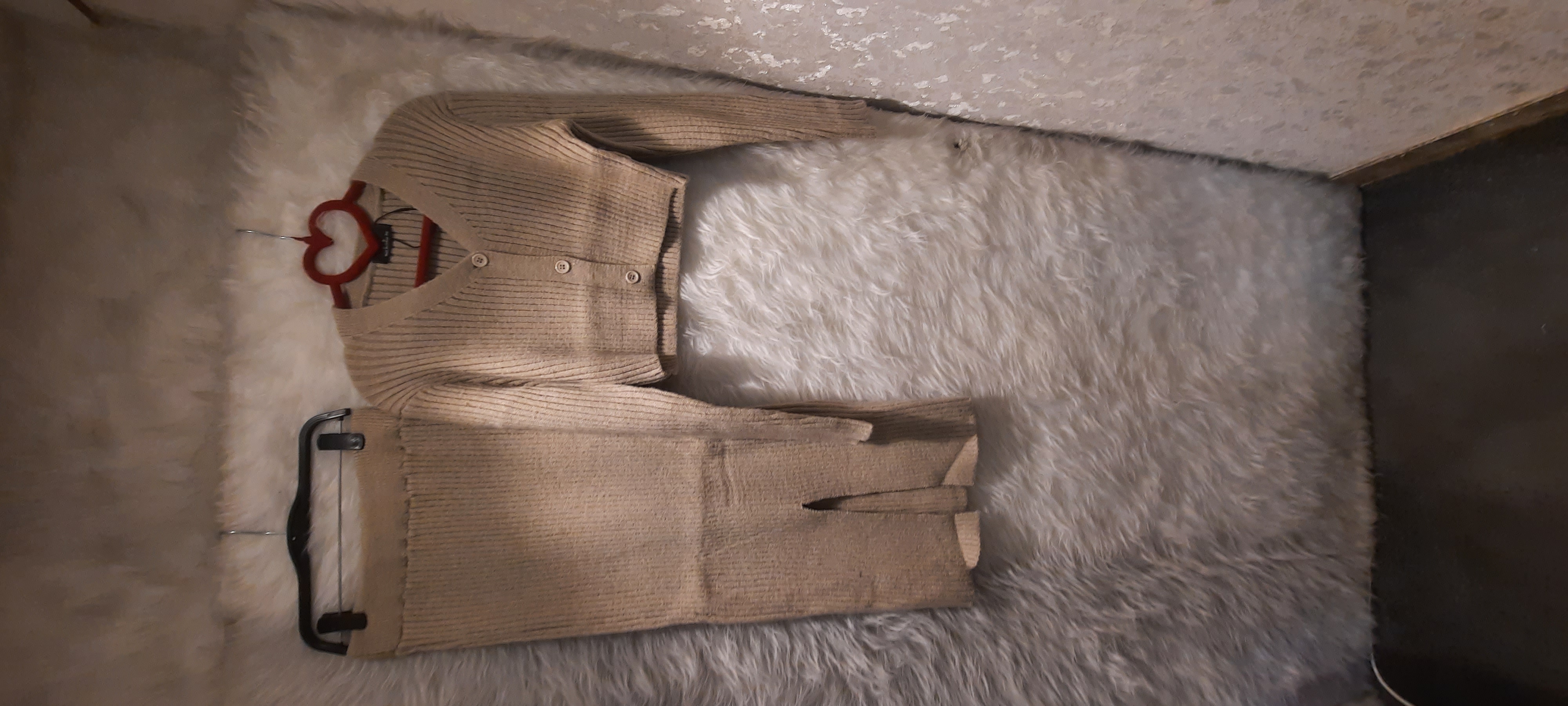 ست بافت بلوز و دامن رنگ کرمی